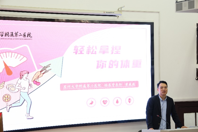 随后,附属第二医院黄威威主任结合多年营养门诊工作经验,从专业角度生动解读了饮食和运动在体重管理和健康促进中的作用,引发师生热烈讨论,为整场活动画上了圆满句号。