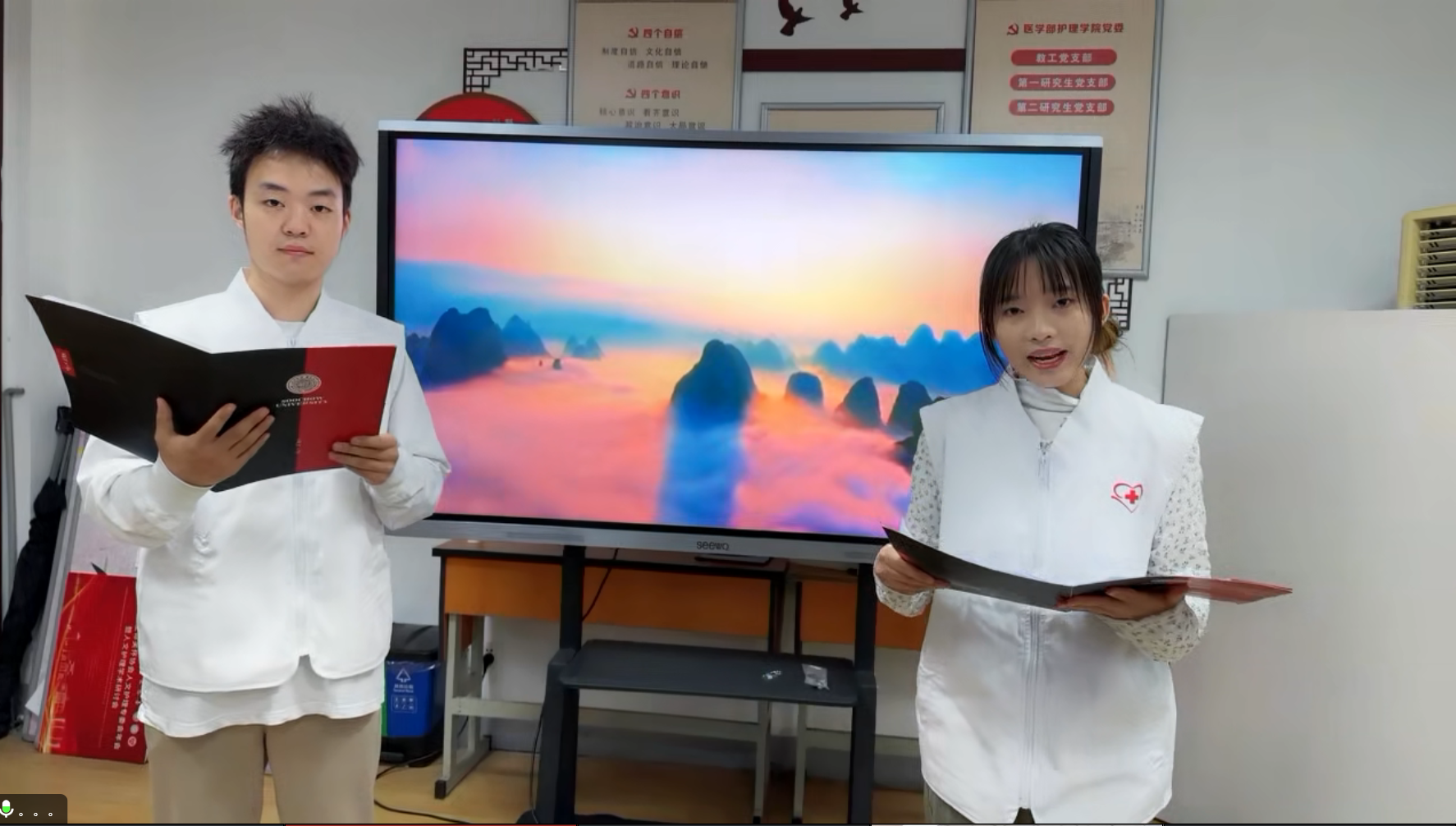 刘慧书记宣读《青年学生与养老院老人共读书行动倡议》,号召护理学子“从我做起,积极参加社会实践,坚持向美向上向善的价值追求,在实践中展现朝气蓬勃的精神风貌,在回馈社会中绽放新时代青年风采”。