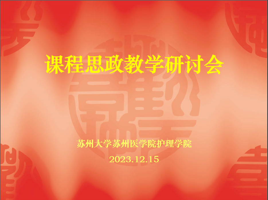 习近平总书记在全国高校思想政治工作会议上提出“要坚持把立德树人作为中心环节,把思想政治工作贯穿教育教学全过程,实现全程育人、全方位育人”,确立了“课程思政”的教育理念。为落实立德树人根本任务,加强课程思政建设,护理学院于2023年12月15日举行课程思政教学研讨会,充分探讨如何在课程教学中进一步提升思政教学水平,提高师生对课程思政教学的重视程度,如何将思政与日常教学工作紧密结合等问题。护理学院院长李惠玲,临床护理学系主任侯云英、苏州大学附属儿童医院护理教学副主任倪志红、学院全体骨干教师及附属医院教师代表参加此次教学研讨会。护理学院副院长田利主持。