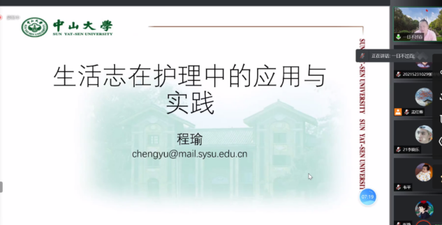 紧接着程瑜教授结合实例解释了生活志应用于护理学科中的重要性。在“大健康”这一观念的影响下,我们需要将护理拓展到生命全周期,护理全方位,从医院到社区再到家庭。护理学科一直在发展,其内在的需求也呼唤着护理人员需要生活志的辅助全面的去了解患者。
