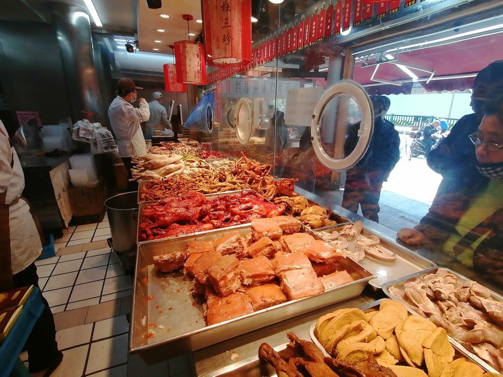 过冬至,除了喝冬酿酒,苏州人另外一个习俗就是吃卤菜。过去民间有“有铜钱格吃一夜,呒不铜钱格冻一夜”的俗语。现在当然没有冻一夜,也不会真的吃一夜,但买点现成卤菜家里好好吃顿丰盛的团圆饭,还是很多苏州人家的习俗。所以苏城的卤菜店,无一例外会在冬至节前的一两天里,迎来生意最好的时候。