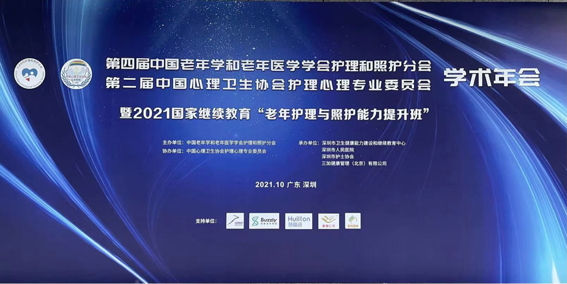 中国老年学和老年医学学会护理和照护分会第四届学术年会和中国心理协会护理心理专家委员会第二届年会于10月21日在广东省深圳市召开。本次会议以“人文·创新·融合·务实”为主题,包含健康老龄化和精神健康的主旨讲演、创新与实践——医养结合新尝试论坛、新形势下医护协同的整合照护论坛、优秀论文颁奖和青年学者优秀论文分享、分会和专委会工作总结,以及考察交流等众多环节板块,中国老龄协会、中华护理学会、中国老年学和老年医学学会、广东省护士协会、深圳市卫生健康委员会以及医学院校、各级医院和医养结合机构的医疗、护理专家齐聚一堂,就国家养老政策于发展趋势、医养结合机构的改革与创新、新形势下医护整合服务模式、卓越护理与人文、专业人才培养等方面进行深入的交流与讨论。