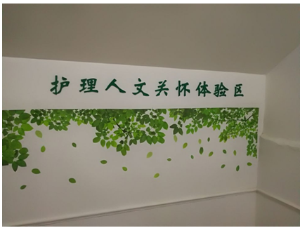 (9)2015年获批省级学科综合训练中心后,进一步完善人文关怀体验区,按照华生的人文关怀十大要素将感知、聆听、共情、沟通、关怀区融入关怀教学及体验之中。