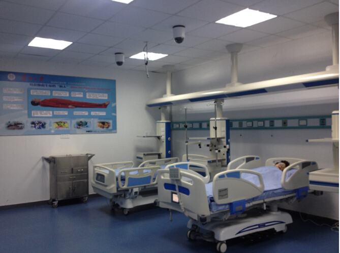 重症监护病房含有一个中心监护台,能观察到所有被监护患者。设有隔离室,使学生直面重症传染病患者隔离以及护理环境。