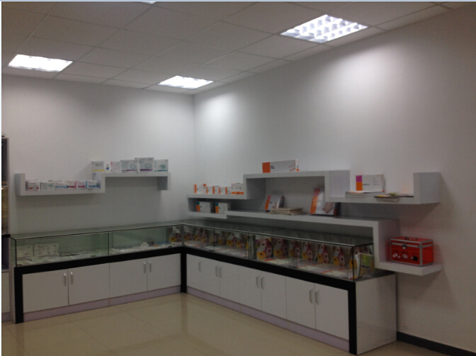 2)模拟治疗室:分成储物柜以及污物处理区。储物柜上柜中卫操作示范盘,下柜中含有各种消耗品。污物处理区,模仿医院污物处理区构造,含利器桶,医疗垃圾桶等。
