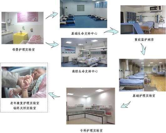 学校通过中央与地方共建、江苏省特色学科经费、教学设备专项投入等途径,三年内连续投入建设经费达600多万元,其中仪器设备投入达335多万元。目前实验教学中心拥有先进的智能化无线综合模拟人METIMAN、挪度高级儿童模拟人、分娩模拟人、每间实验室有摄像系统及设备带、部分实训室及教室有录播设备、有内、外、妇、儿、诊断、急救等各学科种类齐全的教学模型和设备,已初步形成了一整套覆盖所有护理技能教学培训的完整体系。