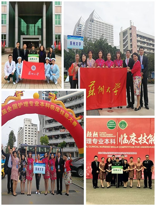 学院培养的本科生综合素质优异,专业化、创新化的培养方式使本科生取得了一定的科研成果,例如课题的立项与论文的发表,有本科生获得“莙政学者”基金项目。此外积极选拔学生参加全国技能比赛以及江苏省高校急救技能比赛,聘请临床技术能手担任国家及省市各级技能大赛的导师,让选手学生们在榜样和楷模的指导下苦练基本功,为大赛夯实基础,以赛促学、以学参赛,从而培育具有较高综合素质和实践能力的卓越护理人才。参赛院校中既有国家985、211 知名院校,也有近年涌现出来的高等护理教育的后起之秀,涵盖26 个省市自治区,代表了国内高等护理教育临床教学的最高水平。大赛为苏州大学护理学院的参赛选手提供了一个提高技能、开阔视野、展示风采的大舞台,同时也达到以赛促学、以赛促教、以赛促管、教学相长、医教协同的目的。