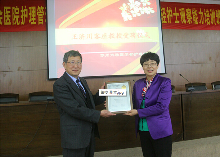 4月22日下午,美国统计学专家王济川博士受聘苏州大学客座教授仪式在我校王健法学院学术报告厅举行。我校副校长路建美,护理学院院长李惠玲、党委书记沈志清、副院长阐玉英以及护理学院所有教师出席了受聘仪式。受聘仪式由沈志清主持。